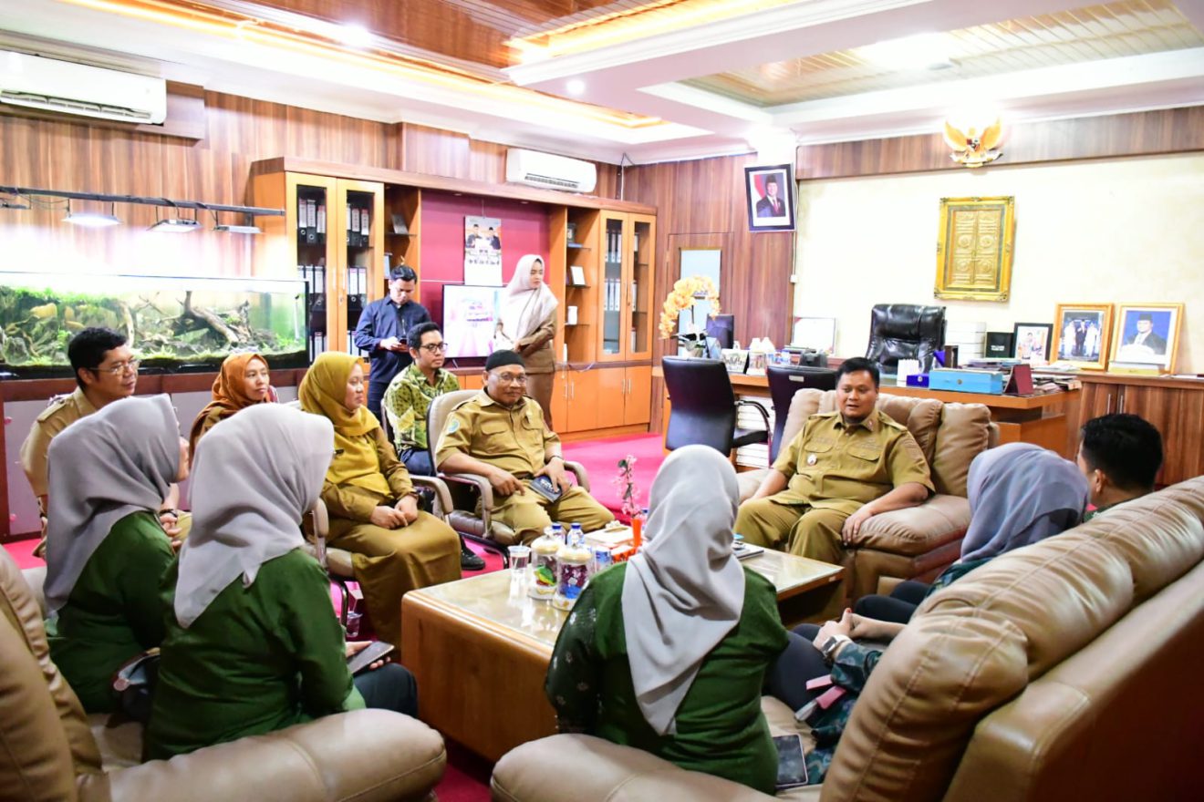 Audiensi yang berlangsung di Ruang Kerja Sekretaris Daerah ini diterima langsung oleh Sekretaris Daerah Banyuasin Ir. Erwin Ibrahim, S.T.,M.M.,MBA,IPU,ASEAN,Eng yang didampingi oleh Asisten I Dr. Ir. Izro Maita, M.Si., Sekretaris Dinas Kesehatan Dr. Indah Deryane, M.Kes.