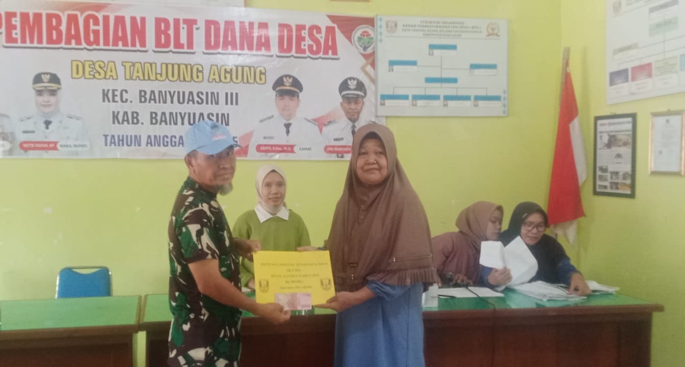 TANJUNG AGUNG, MERAHPUTIHNEWS.CO.ID – Bantuan Langsung Tunai Dana Desa (BLT-DD) bulan ke 8 disalurkan Pemerintah Desa Tanjung Agung Kecamatan Banyuasin 3 Kabupaten Banyuasin ke 32 orang Keluarga Penerima Manfaat (KPM) bertempat di Kantor desa. Kamis (7/8/2025).