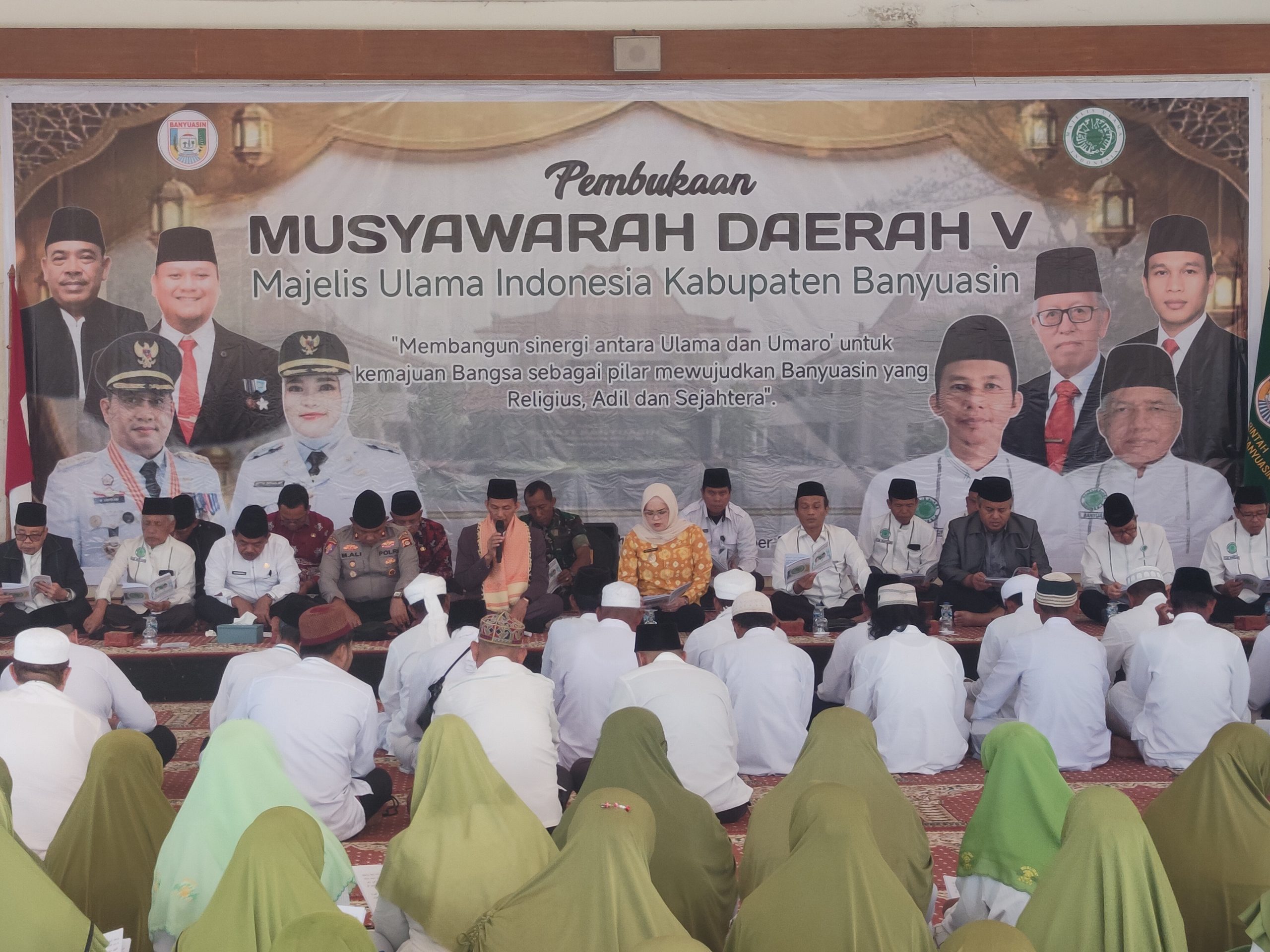 BANYUASIN, MERAHPUTIHNEWS.CO.ID – Musyawarah Daerah ke -V Majelis Ulama Indonesia (MUI) Kabupaten Banyuasin telah dibuka secara resmi oleh Wakil Bupati Banyuasin Netta Indian.SP, di pendopo Rumah Dinas Bupati Banyuasin, Kamis (18/9/2025)