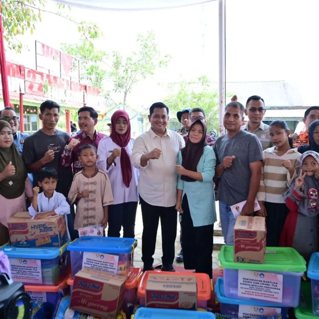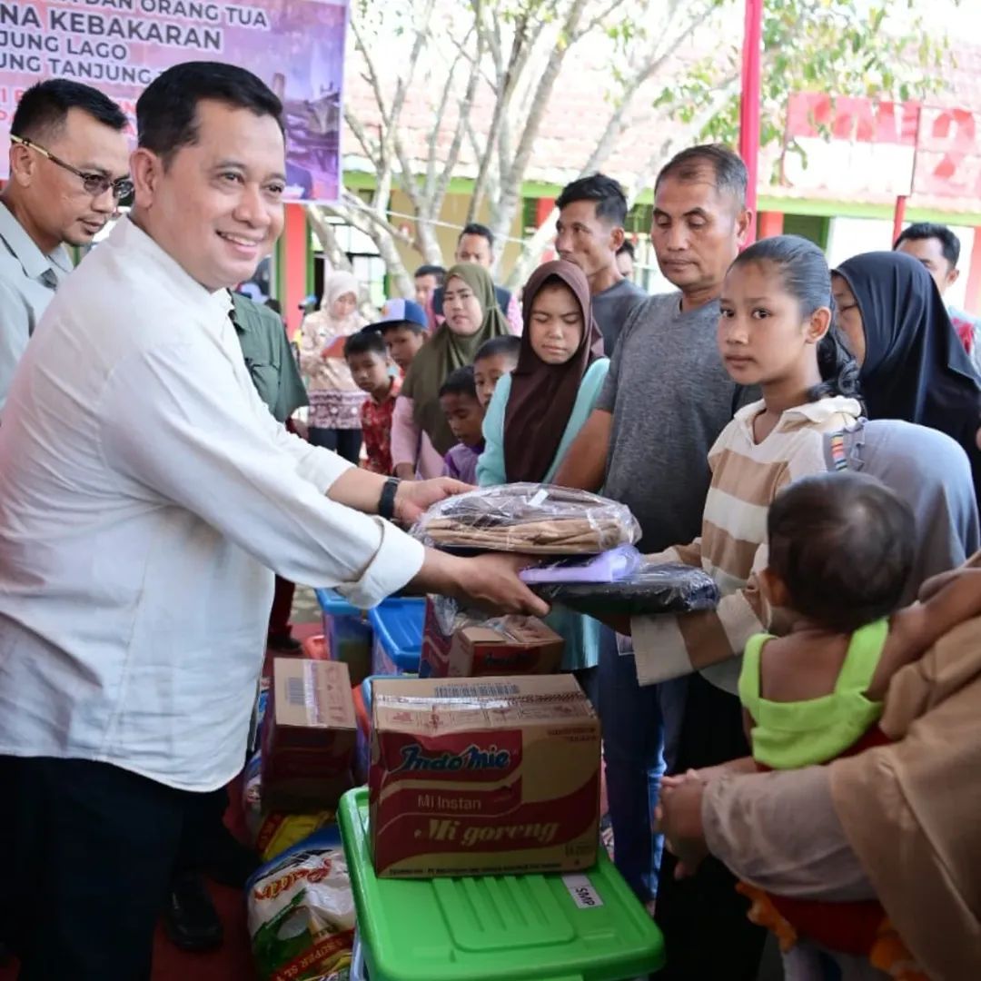 TANJUNG LAGO, MERAHPUTIHNEWS.CO.ID – Bupati Banyuasin Dr. H Askolani menyerahkan bantuan perlengkapan sekolah dan juga bantuan sembako kepada korban kebakaran di Desa Tanjung Lago, Kecamatan Tanjung Lago, Kamis (9/10/2025).