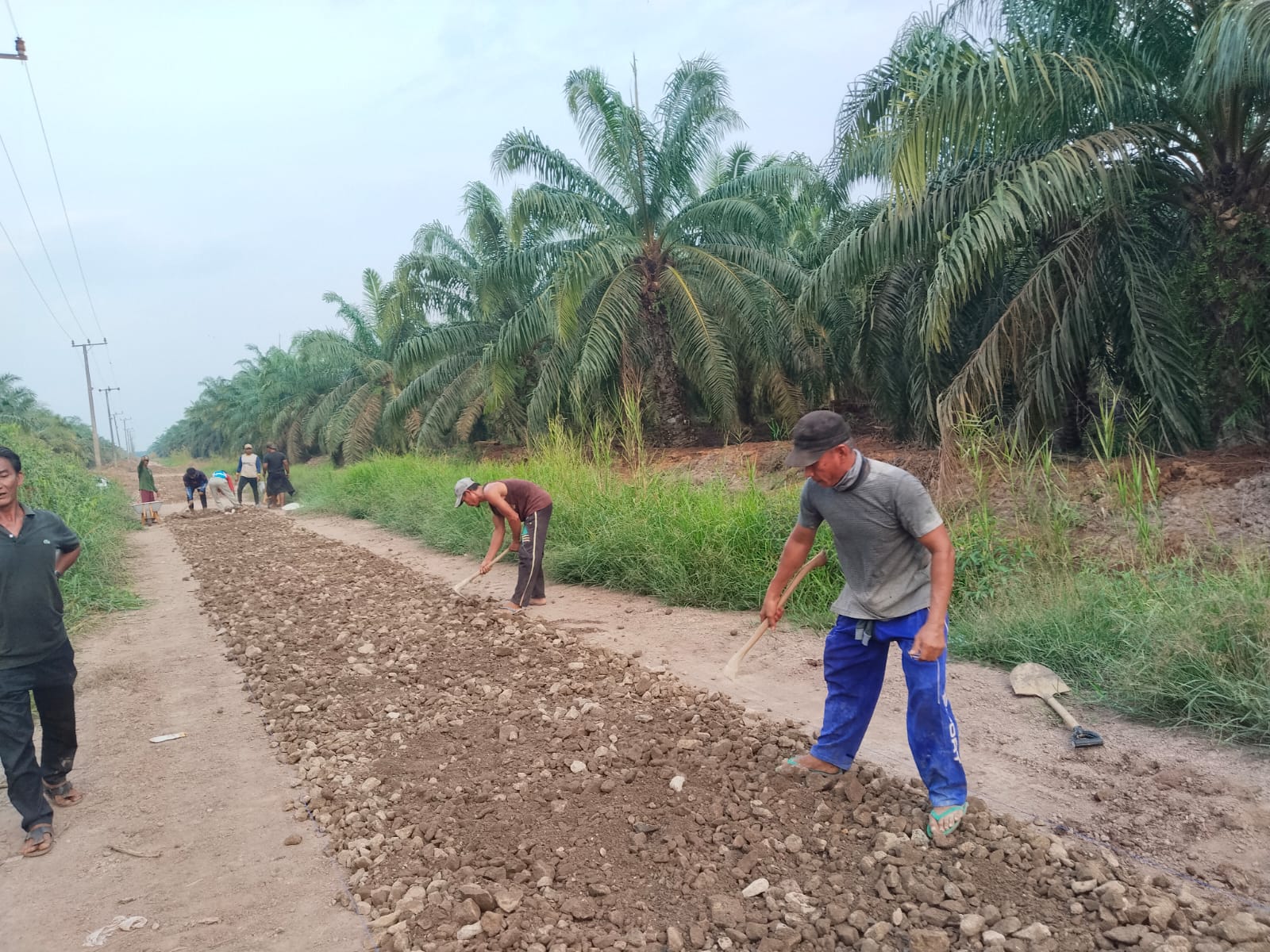Dalam perbaikan ini, pemerintah desa melibatkan seluruh elemen masyarakat dan memanfaatkan sumber daya lokal untuk memastikan jalan dapat diperbaiki dengan efisien. Pengerasan jalan dilakukan dengan menimbun jalan tanah dengan material batu Agregat agar lebih lebih tahan lama untuk mengurangi dampak genangan air dan mempermudah mobilitas warga.