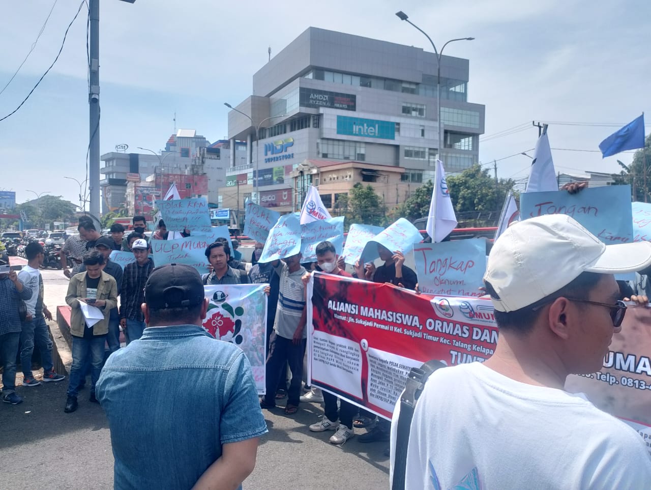 PALEMBANG, MERAHPUTIHNEWS.CO.ID – Ratusan massa aksi yang tergabung dalam Aliansi Mahasiswa, Ormas dan Lembaga Sumatera Selatan mendatangi Mapolda Sumsel melakukan aksi demontrasi terkait dugaan pencatutan nama institusi kepolisian yang diduga dilakukan oleh oknum UKPBJ (ULP) Musi Banyuasin, pada Kamis (6/11/25) pagi.